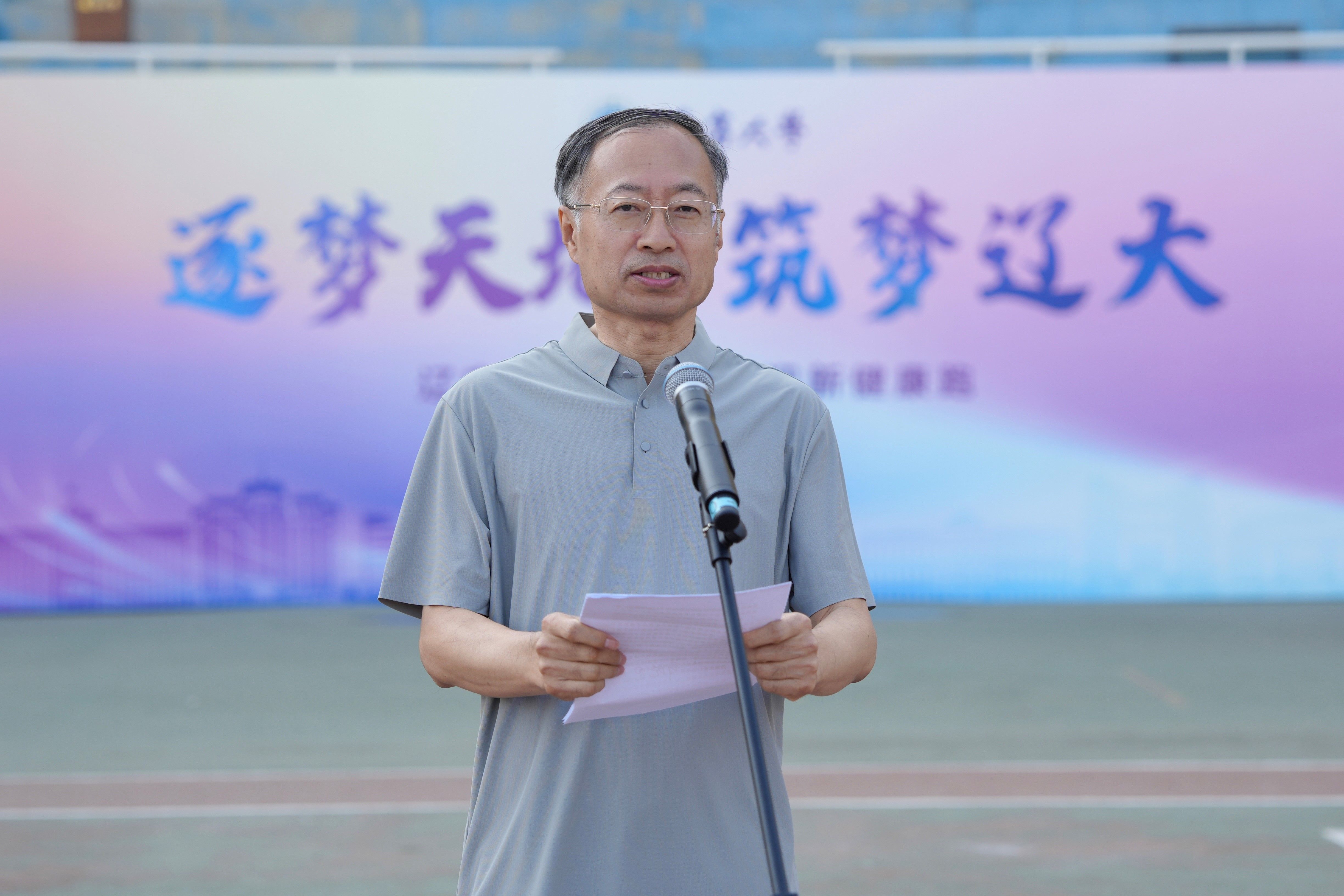 他强调,奔跑,于家国而言,是一部波澜壮阔的奋斗史诗;于个人而言,是一场自我超越的淬炼征程;于青春而言,是一种不可阻挡的生命姿态,它象征着活力、激情与无限可能。他希望同学们把健康运动之风传承下去,在运动中磨炼意志、增强自信,以健康的体魄支撑行稳致远的根基,让坚韧的意志成为跨越困难的铠甲,使青春在奔跑中永远滚烫。