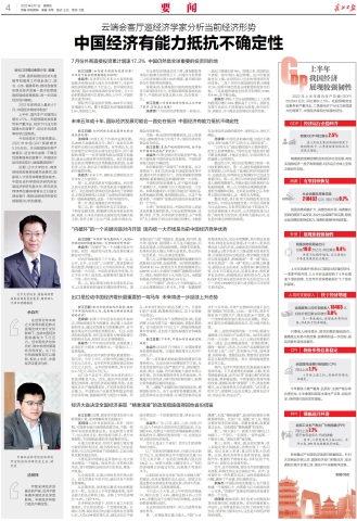 余淼杰:在世界百年未有之大变局和新冠肺炎疫情全球大流行交织影响下,当前中国经济面临着较大下行压力。但中国经济总体向好、稳中求进的基调并没有改变。从7月份的数据表现可以看到,相比上半年,中国经济正逐步向好。